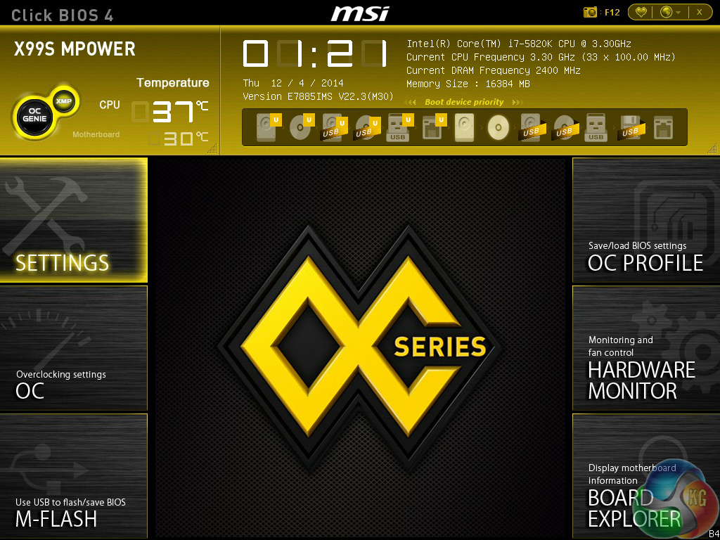 Boot device priority can be quickly adjusted by dragging the relevant drive into its start-up position. The same easy application is true for OC Genie and XMP modes – simply click the relevant buttons in the frame’s top-left corner.