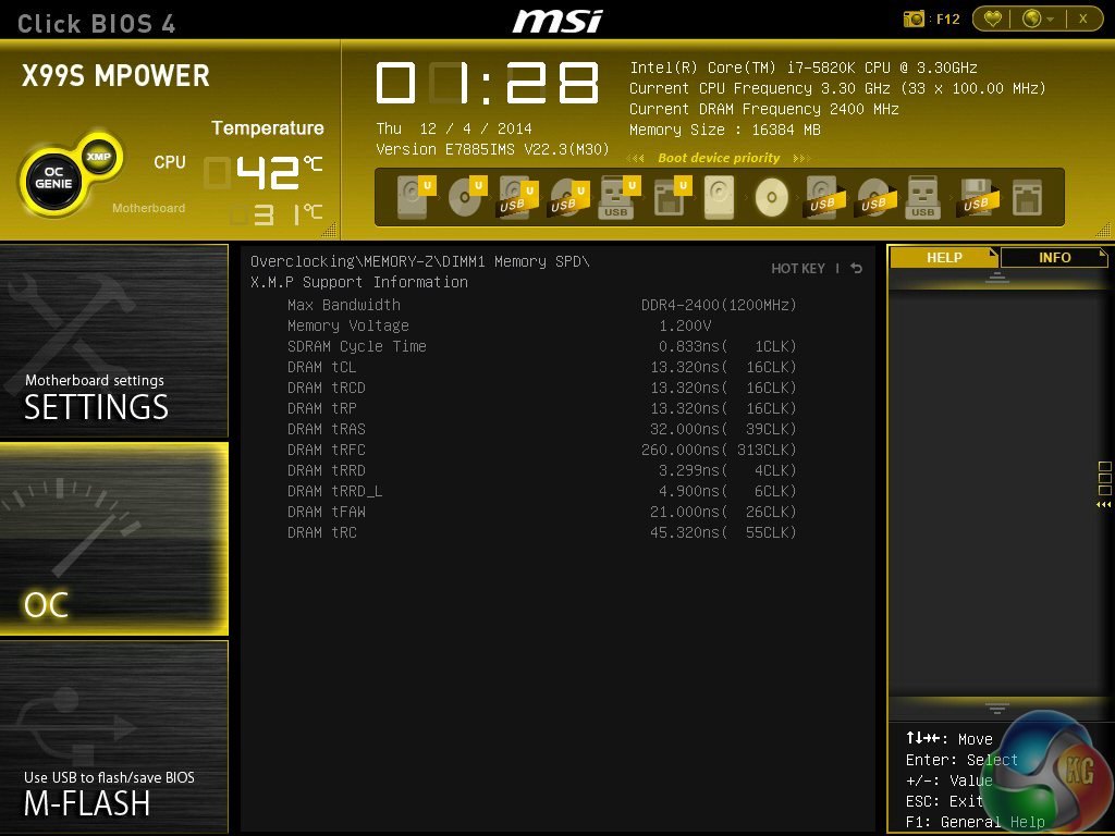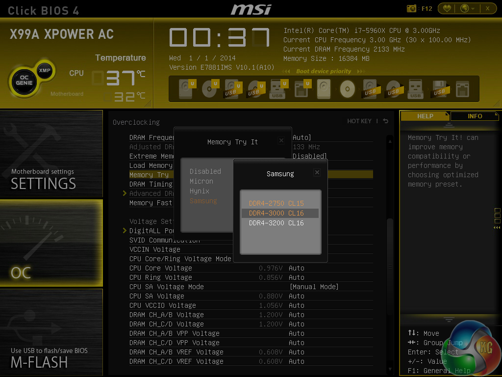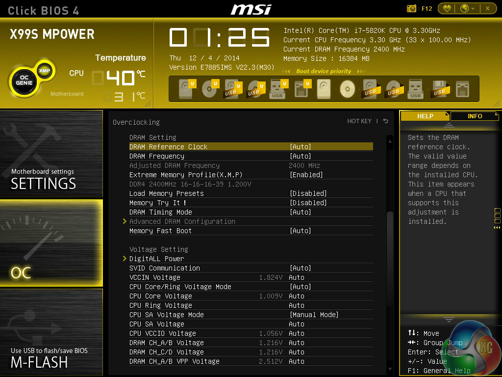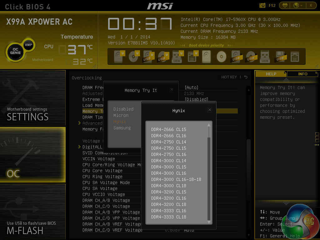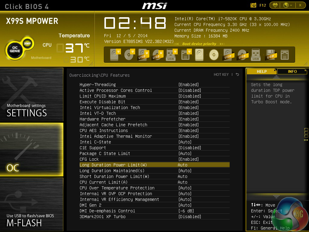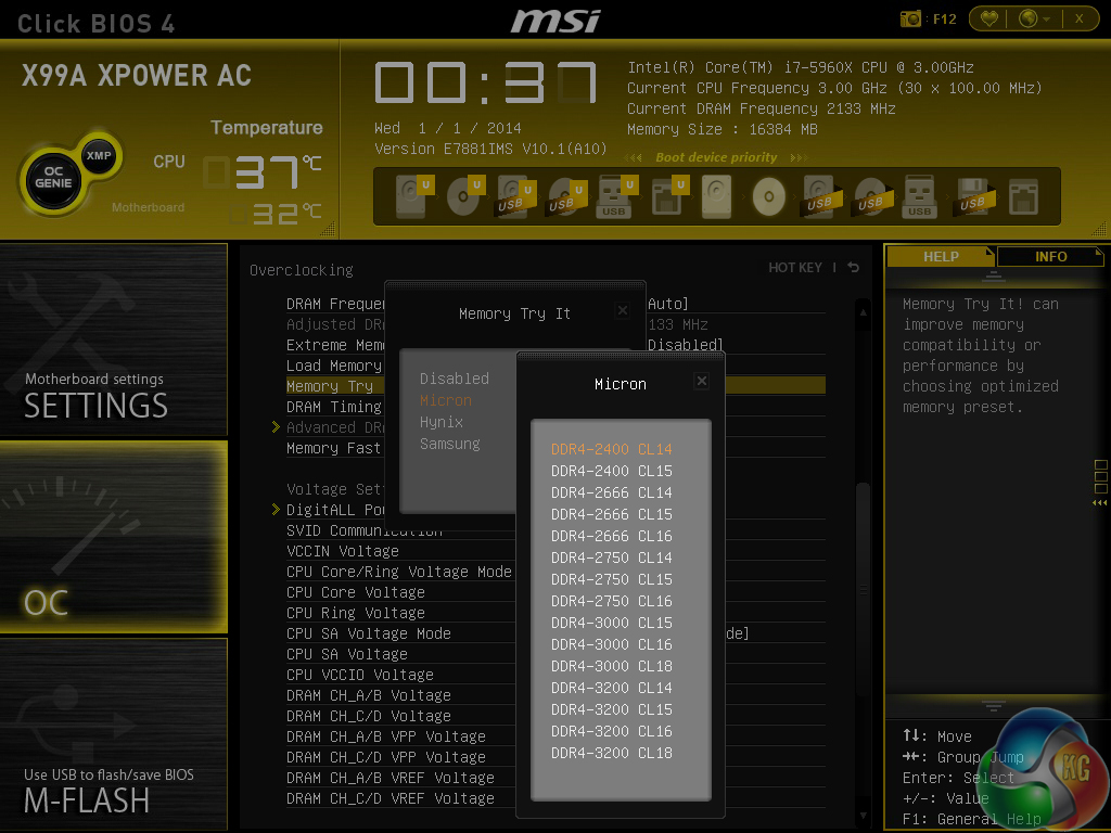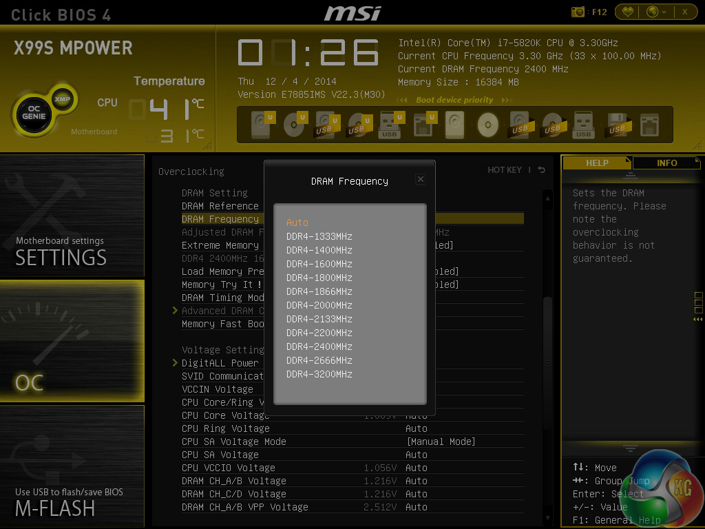 MSI’s Click BIOS 4 interface has a strong underlying ease-of-use aspect. Practising overclockers are given additional information and assistance as they learn about specific settings, but there are also plenty of options for more advanced frequency tuning. The LN2 modes are useful for stripping away unneeded features while pushing for maximum clock speed.