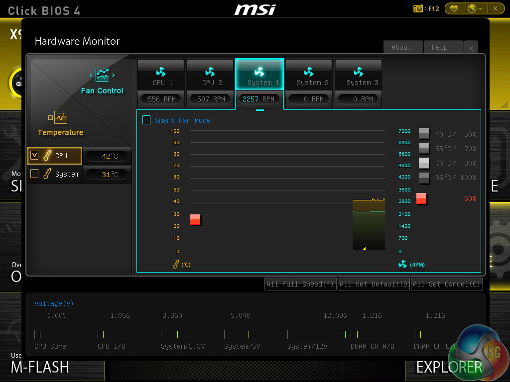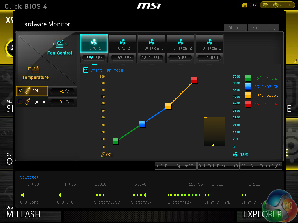 MSI employs a graphical interface that permits for tweaking of fan speeds inside the X99 UEFI.
