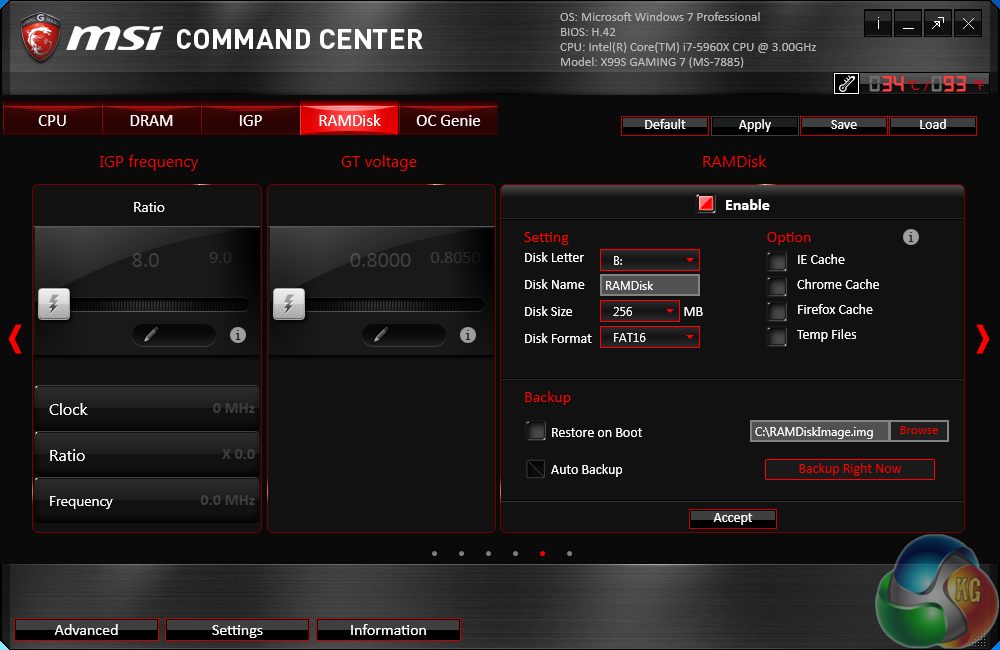 MSI's Command Center software is a comprehensive tool that can be used for a surprisingly diverse range of tasks. General overclocking and frequency-related duties can be handled via the software suite, and a RAM disk can also be created.