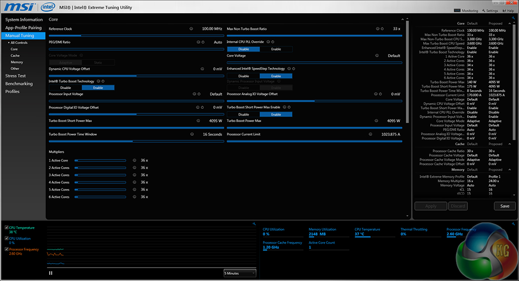 Eco Center allows users to switch off specific components to cut power usage. Intel's Extreme Tuning Utility gives a more in-depth set of voltage and power parameters than MSI's Command Center suite.