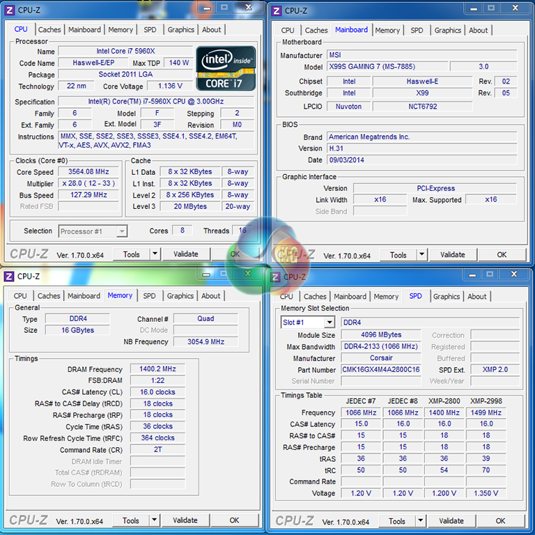 - Processor: Intel Core i7 5960X ES (3.56GHz forced turbo & XMP).