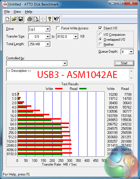We tested USB 3.0 performance using the Kingston HyperX 3K SSD connected to a SATA 6Gb/s to USB 3.0 adapter powered by an ASMedia ASM1053 controller.