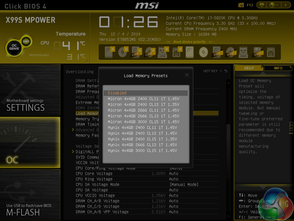 A number of pre-tuned overclocking profiles for certain memory kits are also included.