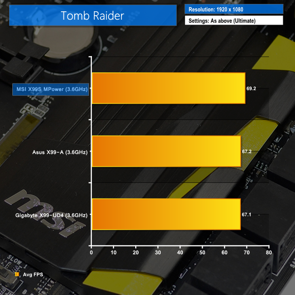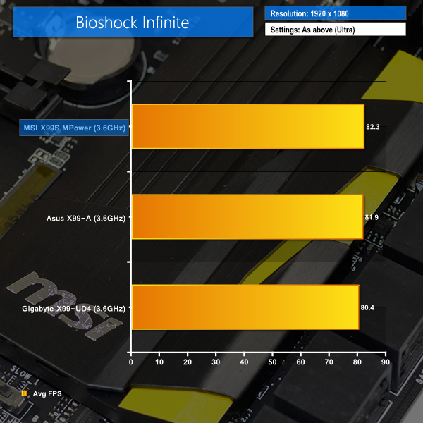 The same positive performance shown throughout the majority of computational and system benchmarks is carried through to the gaming results. Three chart-topping sets of gaming results are shown by the X99S MPower.