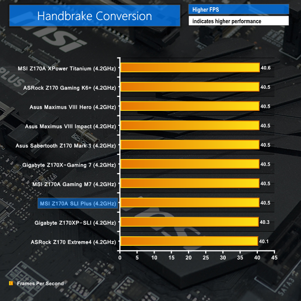 Our Handbrake and 7-Zip tests sit MSI's offering amongst the majority of other Z170 options, with no glaring performance issues being highlighted.