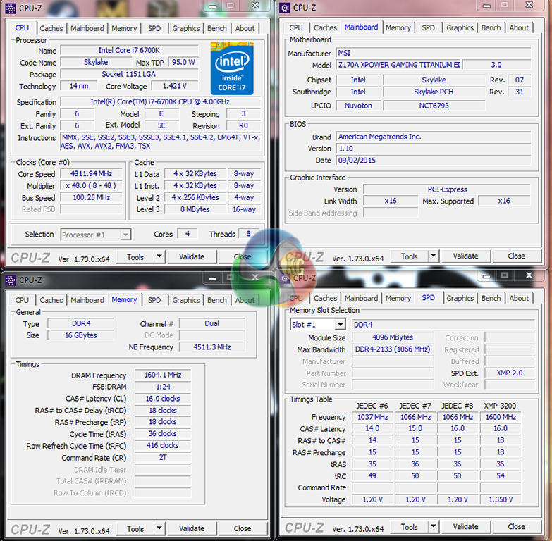 Despite the CPU voltage application difficulties, MSI's Z170A XPower Titanium had no problem taking our Core i7-6700K CPU to 4.8GHz with stability. This was in addition to a 4.5GHz cache frequency and 3.2GHz DDR4 memory.