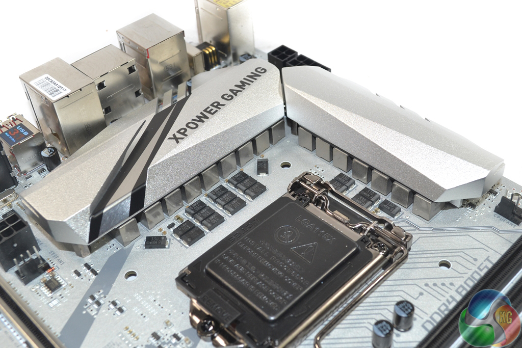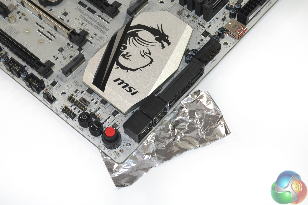 The heatsinks are noticeably more shiny and feature a finish that resembles powder coating, with the appearance of fine metallic particles being present. There is no rear IO port cover that we have seen utilised on many other gaming motherboards. Overclocking users told MSI that IO covers simply get in the way when pushing the board with extreme cooling hardware so the company decided against providing one.