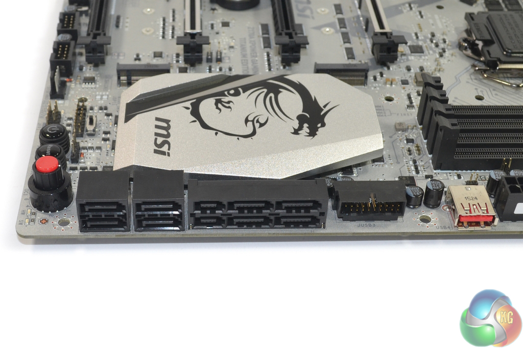 A total of eight SATA 6Gbps ports are provided, six of which come from the Z170 chipset (four deployed in the SATA-Express connectors) with the remaining pair being provided by ASMedia's slower ASM1061 controller (use these for slower drives). All of the standard RAID modes are supported by the Z170-fed ports. SATA ports 7 and 8 are powered by ASMedia – MSI's onboard markings do not make this clear, however the manual does.