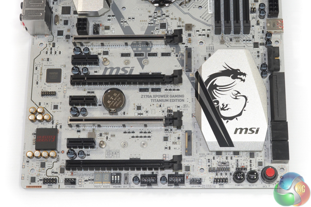 Its unique appearance is the first noteworthy point for the MSI Z170A XPower Gaming Titanium Edition motherboard. Despite appearing to be white in many pictures, the board has more of a subdued metallic aura to it. I use the word subdued because the eight-layer PCB is far from the reflectiveness of a material such as aluminium foil.