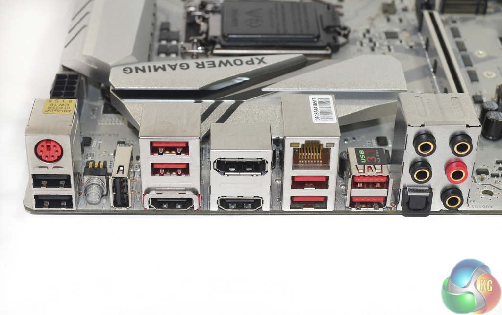 Two 10Gbps USB 3.1 Type-A ports (between the LAN and audio jacks) are provided by an ASMedia ASM1142 host chipset. There's no USB 3.1 Type-C connector as that would require additional cost (in the form of an EtronTech EJ179V switch IC) and is deemed irrelevant for an overclocking-geared board. The up-and-coming connection will be sorely missed by many general buyers, even if its 100W power delivery specification was not implemented (as it is not on most motherboards).
