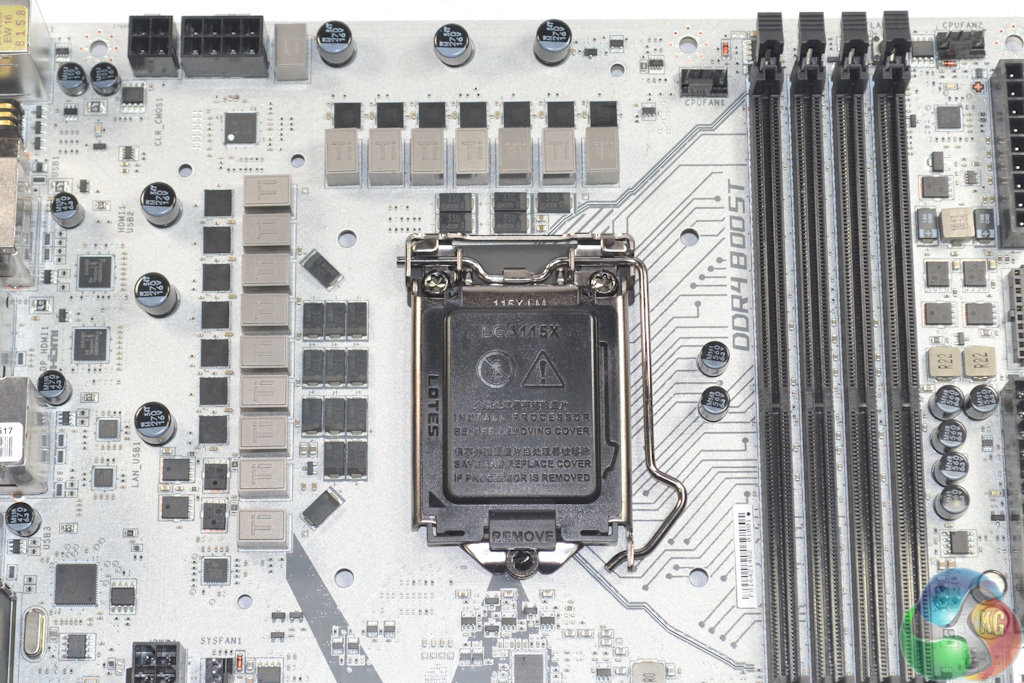 It is worth highlighting how clean and unobtrusive the CPU socket area is. MSI makes use of numerous low-profile Hi-C capacitors rather than the standard, tall can-style capacitors. This helps to minimise interference around the CPU socket when using large CPU air coolers, or more importantly, when trying to insulate the socket area for use with sub-zero cooling techniques.