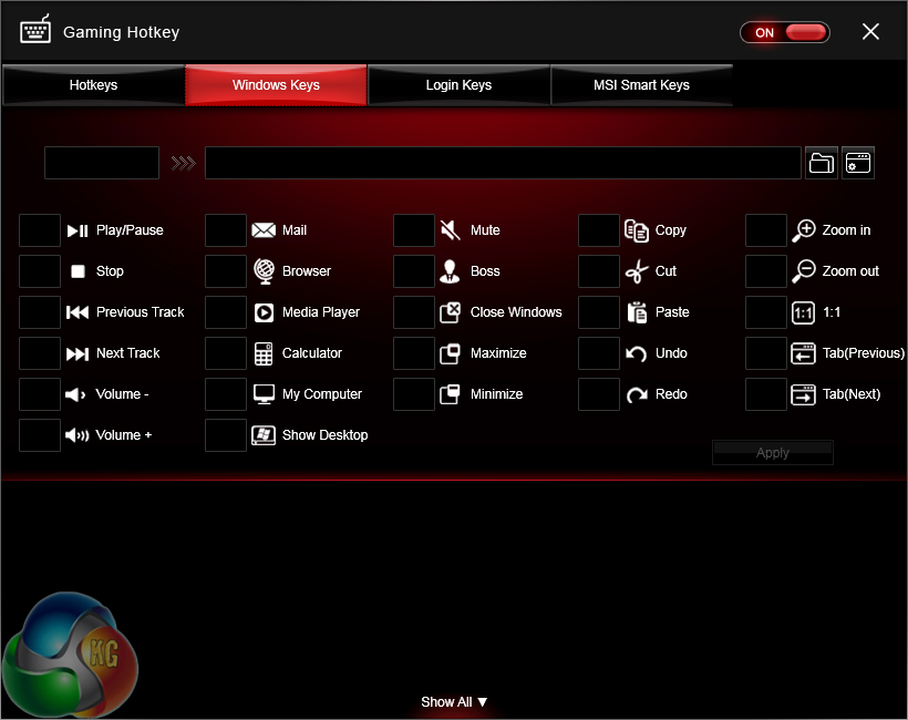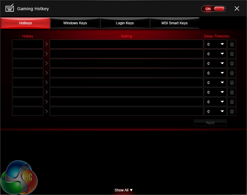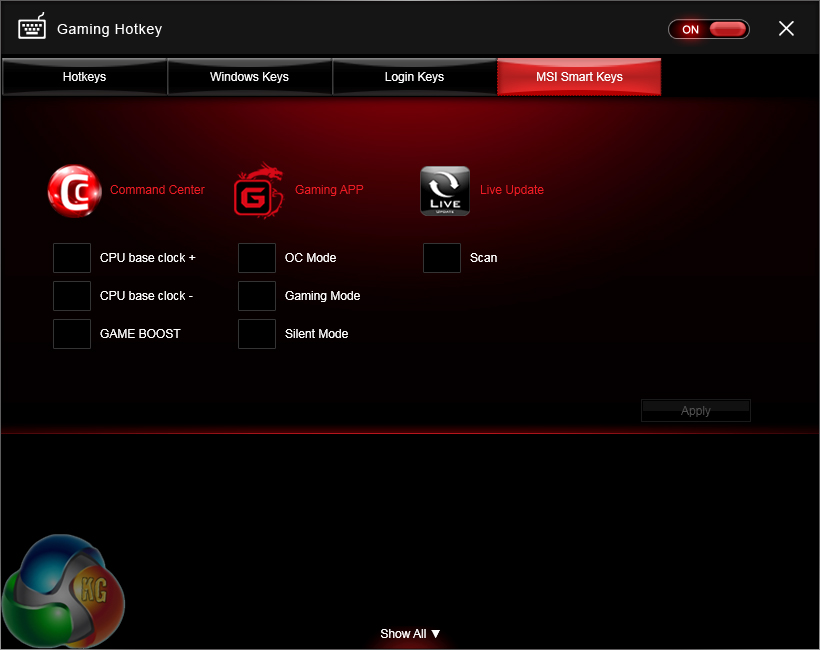 The Gaming App has functionality for applying hotkeys and mouse optimisations.
