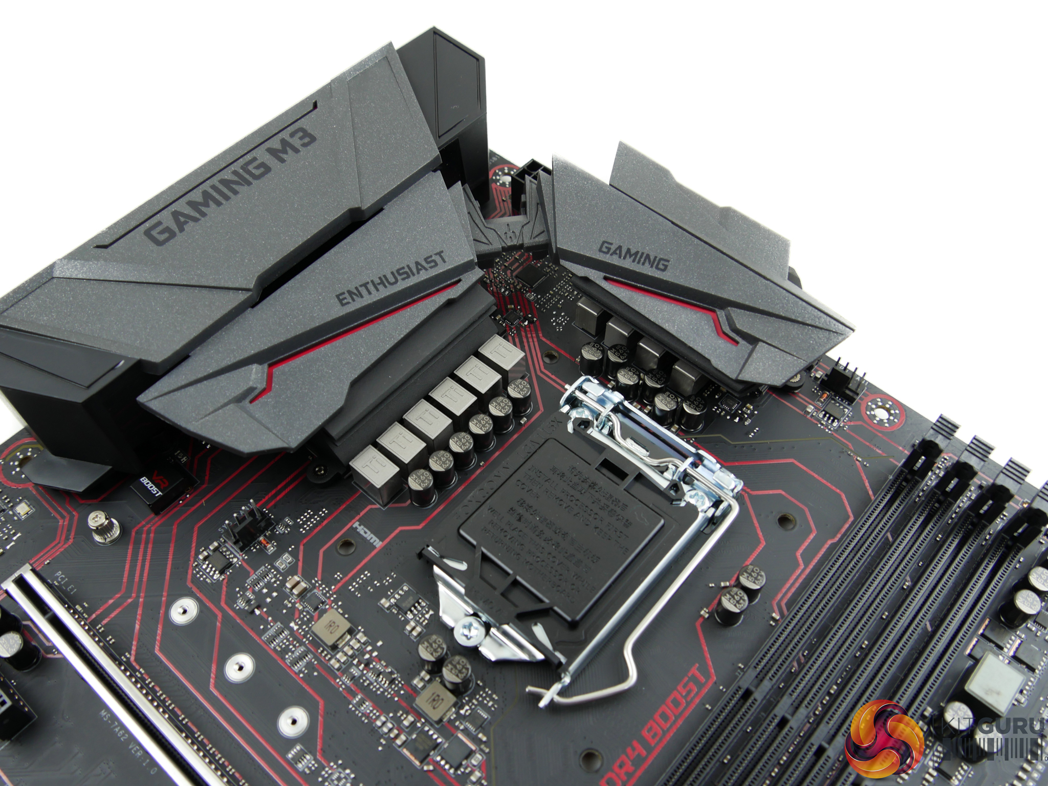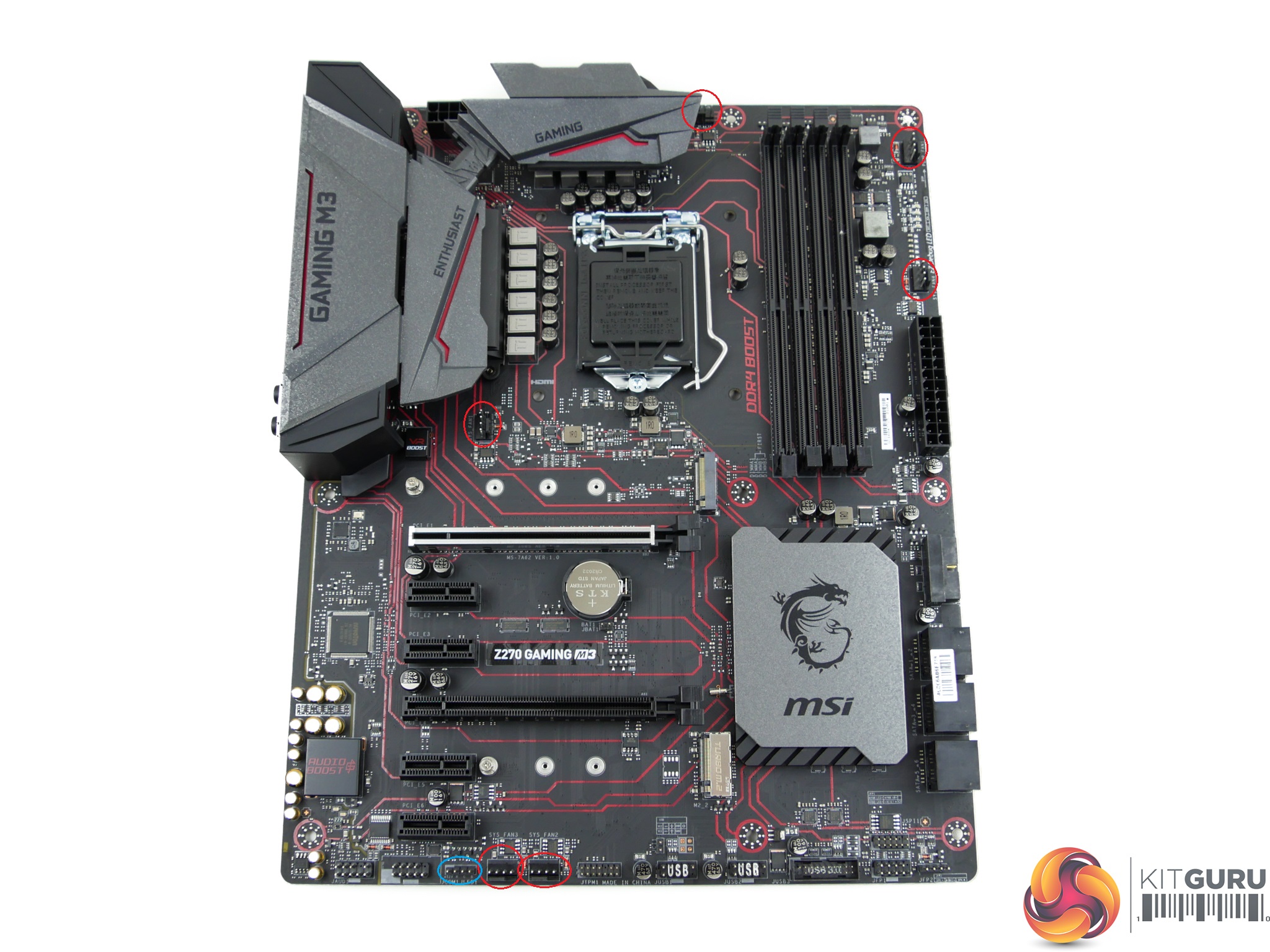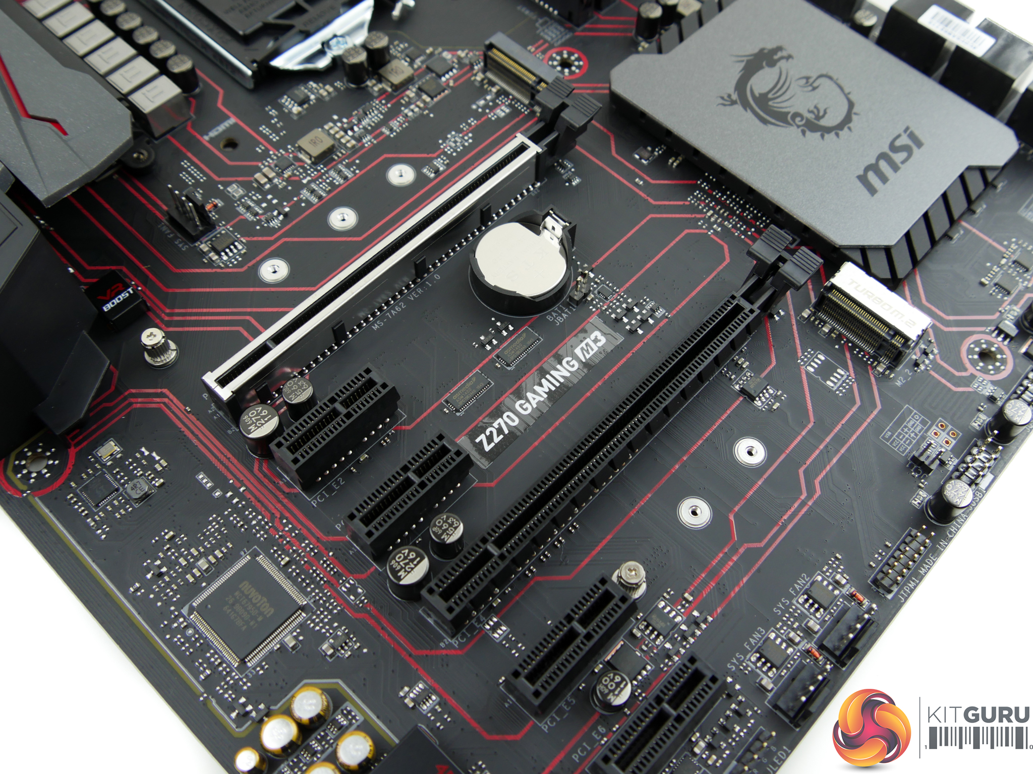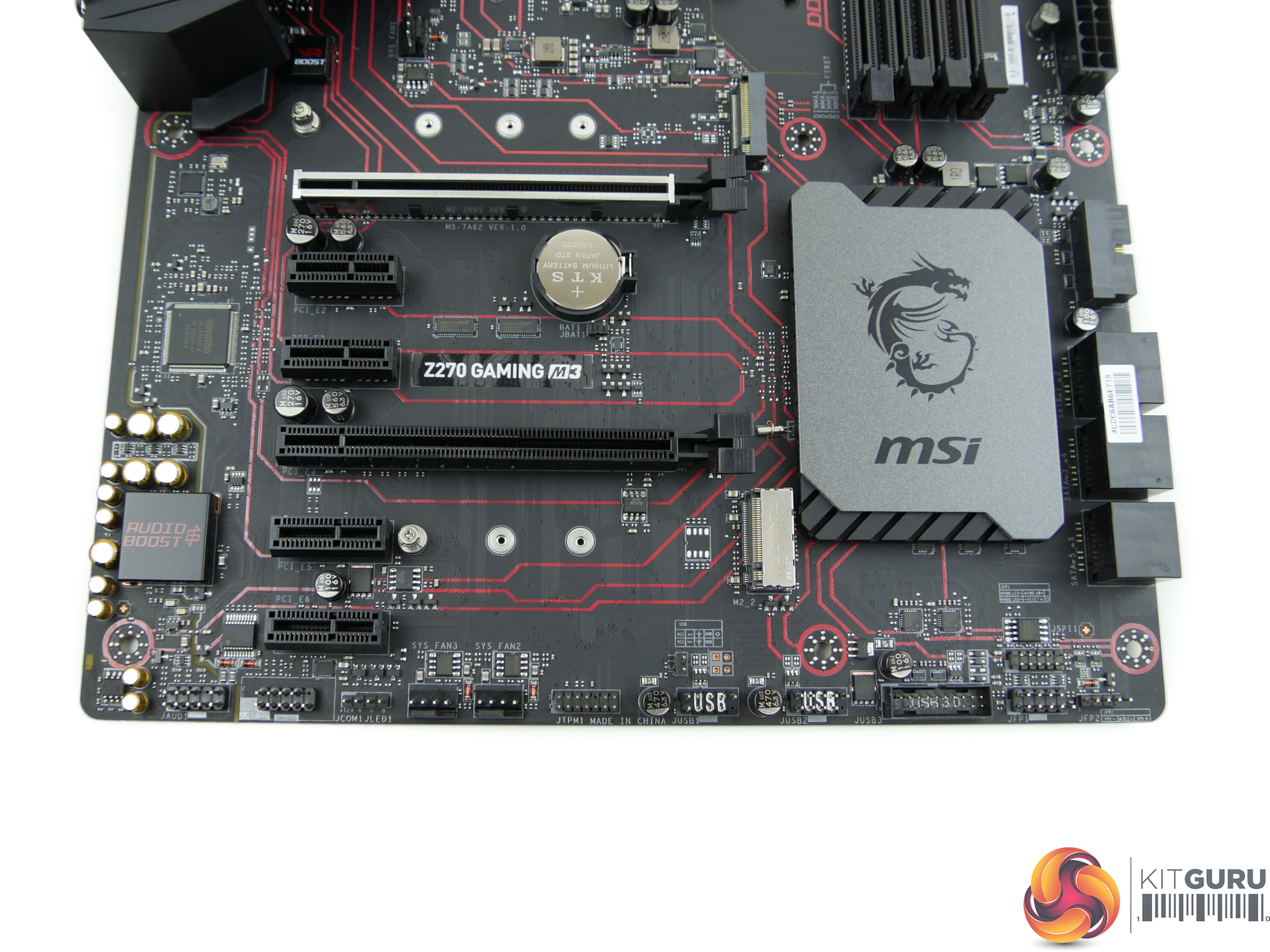 The MSI Z270 Gaming M3 is equipped with a black, grey, and red colour scheme with the latter being deployed as multiple lines that form a circuitry type of appearance. Hints of grey on the heatsinks and rear IO cover will appeal to many potential customers.
