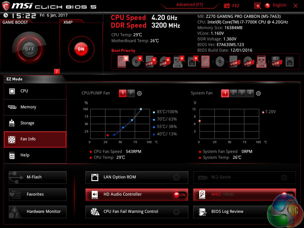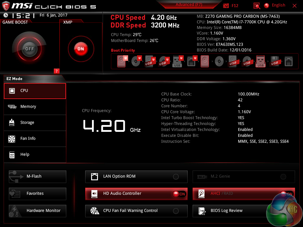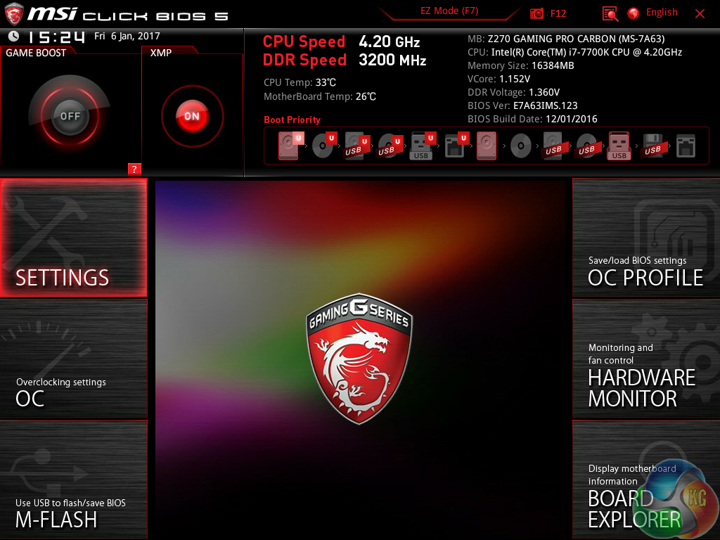 MSI's version of EZ Mode is the best of all motherboard vendors as it features the most options but does not overcrowd the screen and remove the ease-of-use aspect. Buttons for simple XMP and Game Boost overclocking activation are smart moves.
