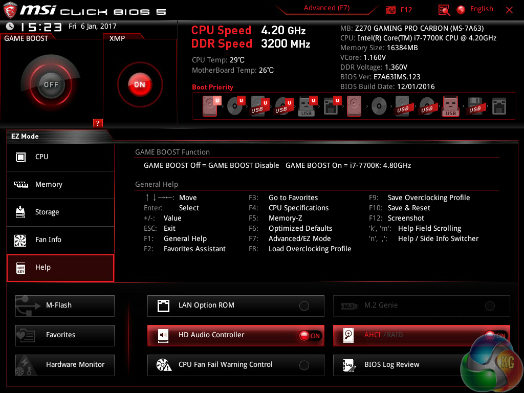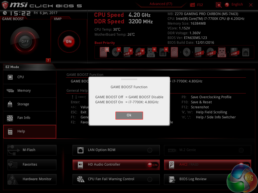 Game Boost is MSI's pre-determined overclocking mode which takes a Core i7-7700K CPU to 4.8GHz at the click of one button.