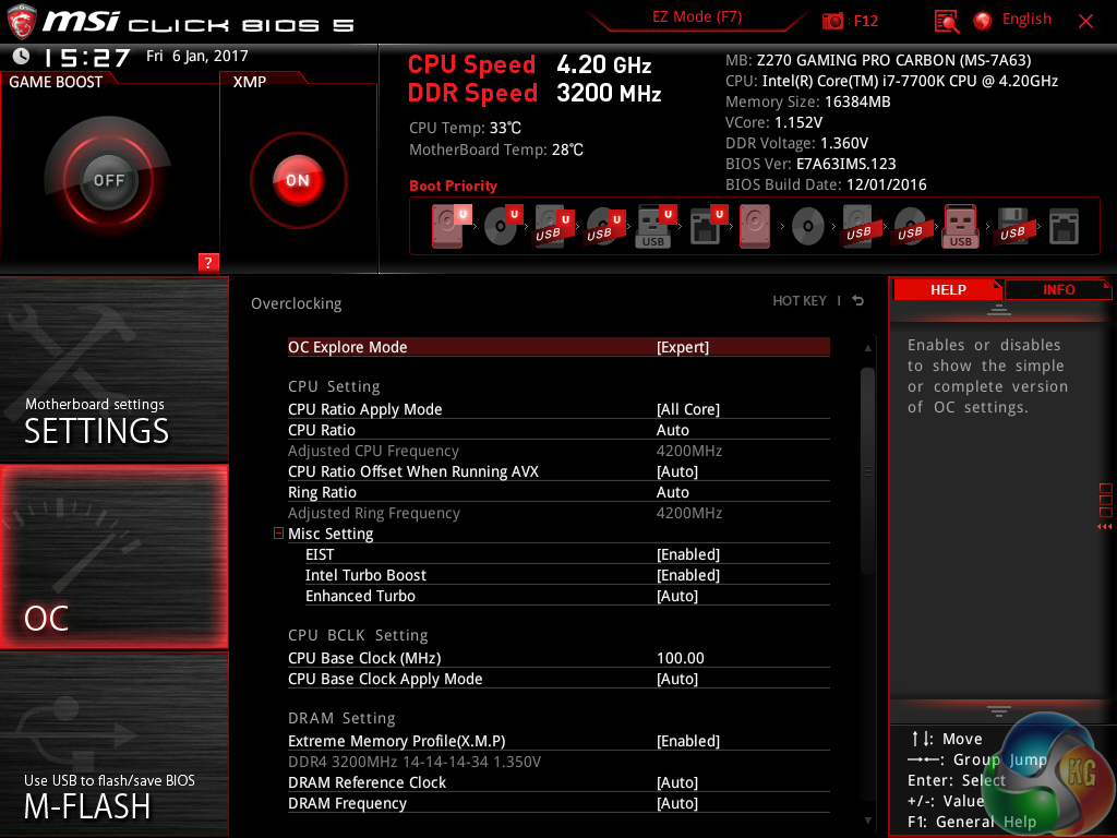 The OC section is, as expected full of settings relating to overclocking. MSI smartly includes a Normal or Expert selection mode that is useful for those trying to learn about overclocking who do not want to risk adjusting irrelevant settings.
