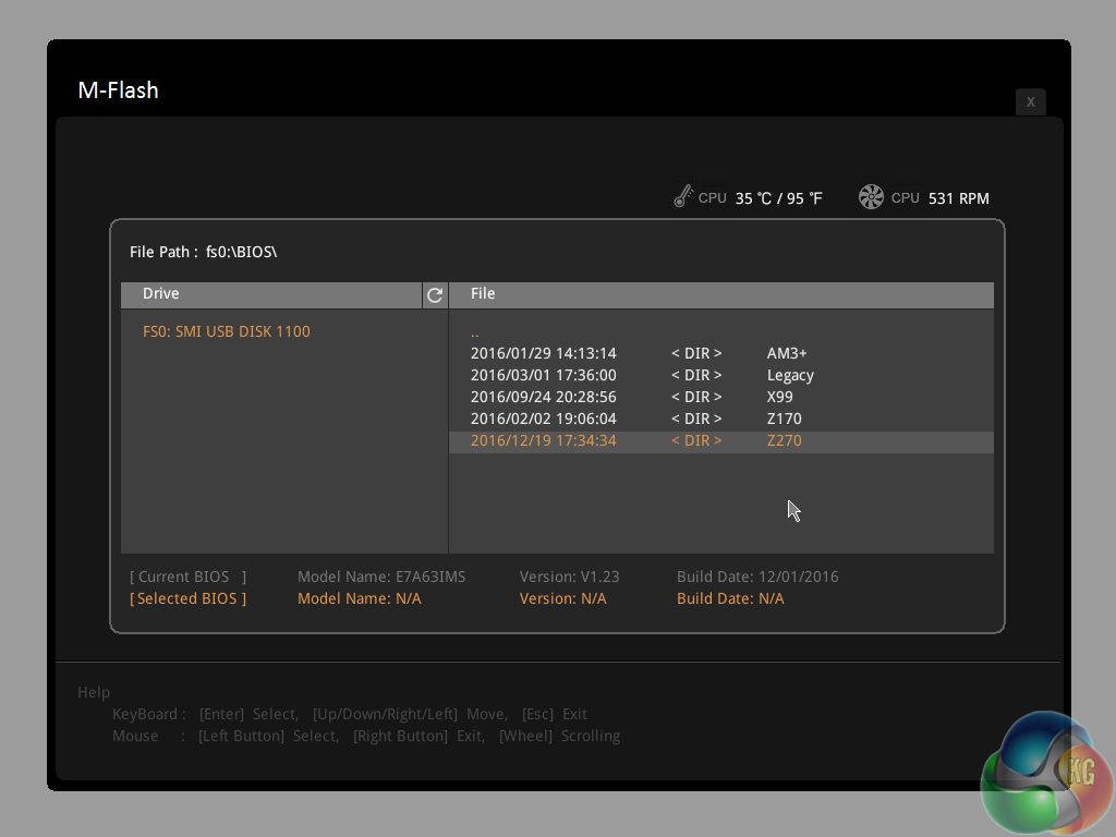 M-Flash has an ability to select BIOS profiles in USB drive folders, which is good. The tool works without hassle.