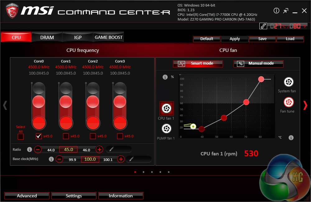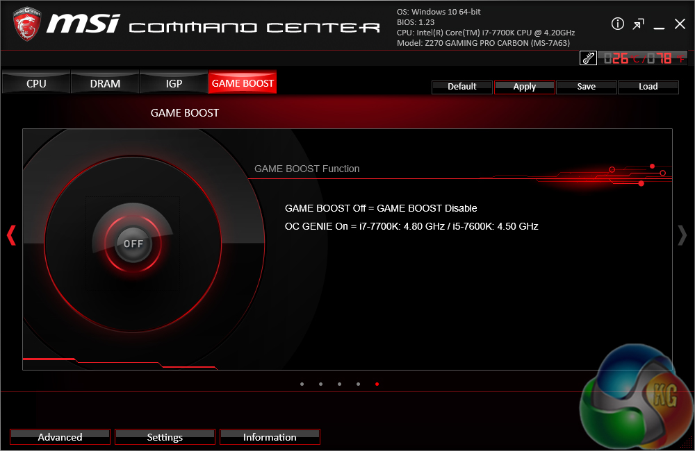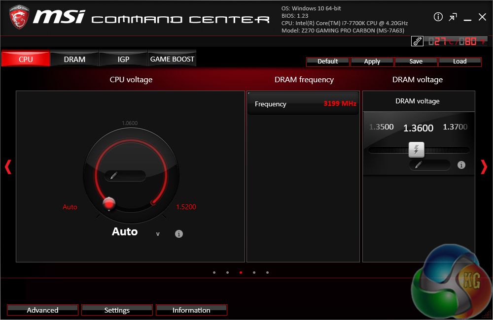 Command Center is the bread-and-butter of MSI's OS-based software tools. Primary functionality of the system can be controlled here, including adjustment of multiplier ratios, clocks and voltages, and MSI's Game Boost overclocking preset.