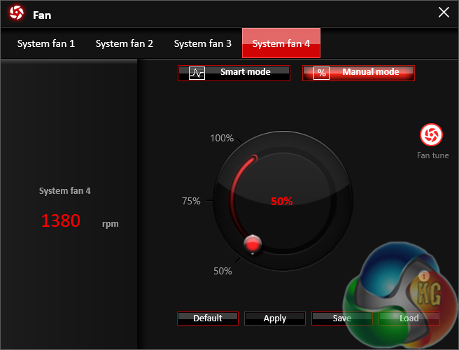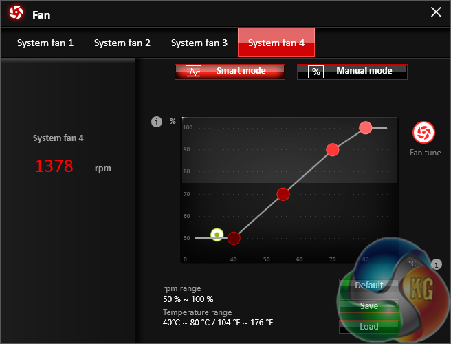 Fan tuning options in Command Center are good. There is an auto fan tuning mode which allows the system to adjust the fan speed curve to its perceived optimal design. User adjustment of the fan speed curves is also possible using a 4-point graph.