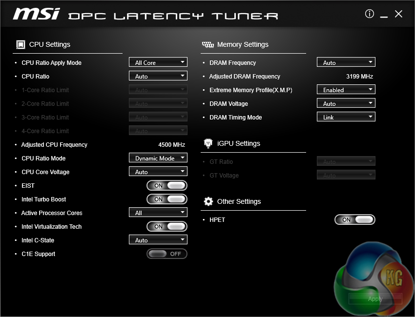 Gaming App is used to control a number of different operating modes for the system. Three pre-set modes are available – Gaming, OC, and Silent. The OC mode applies Game Boost, as it is called in the UEFI.