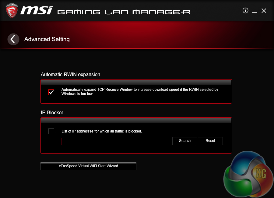 Gaming LAN Manager is essentially MSI's in-house software that allows the vendor to use an Intel NIC while also retaining some of the control features typically associated with Killer-based offerings. The main benefit is enhanced information delivery so that a user can understand how their system's network-interacting software is behaving. There's also an ability to prioritise applications such as games.