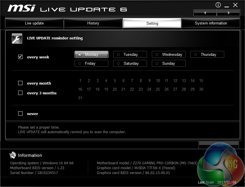 MSI's lighting options in the OS software are good. They aren't quite as good as Gigabyte's and ASUS' alternatives which offer intelligent operation modes for the LED colours to react to system behaviour such as temperatures. MSI's interface is, however, an improvement over ASRock's offering that we saw on the Fatal1ty Z270 Gaming K6.