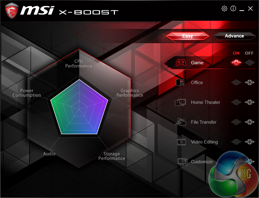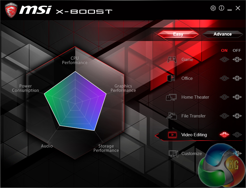 X-Boost features a number of system operation modes that use tweaked settings. There are presets for operations such as gaming and video editing and the option for a user to create their own setting is present. The game mode sets all performance metrics to a high importance while the video editing mode emphasises parameters important to such a task.