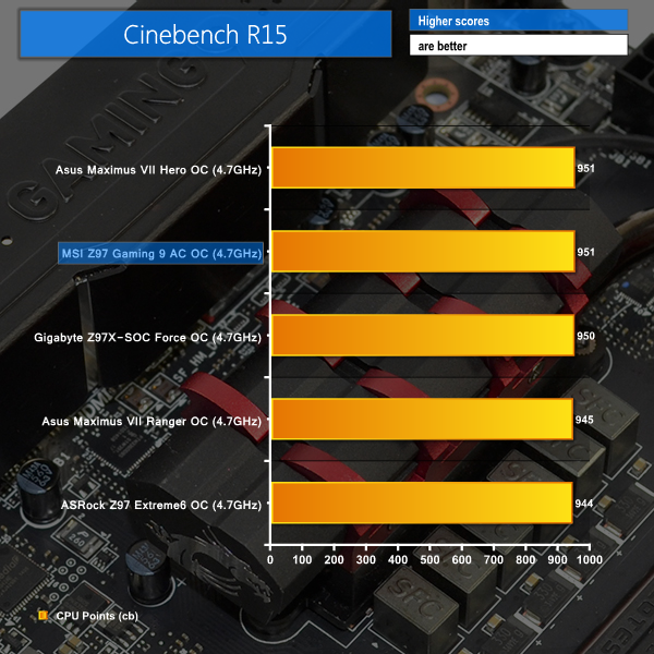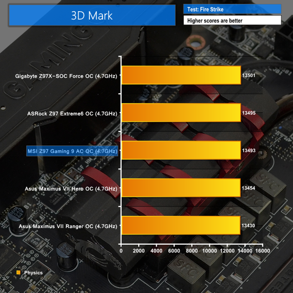 We will outline the performance increases that can be obtained from using the MSI Z97 Gaming 9 AC motherboard to overclock our system. Our overclocked processor frequency was 4.7GHz and memory speed was 2400MHz.