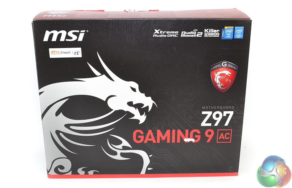 MSI ships the Z97 Gaming 9 AC in packaging colours that we have come to expect from the company's Gaming series components.