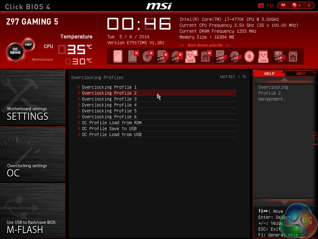 Up to six OC profiles can be saved and named. This is a good number to provide as it gives users flexibility when testing out different overclocking configurations. Profiles can also be imported and exported from or to a USB drive for backup and sharing purposes.