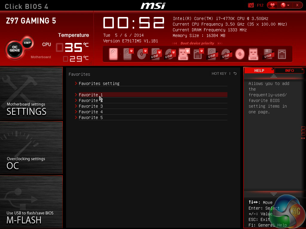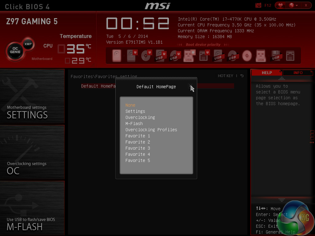 Another new feature for MSI's Click BIOS 4 is the Favourites section. Users are free to add some of their commonly accessed parameters to the Favourites profile. The default home page can also be changed.