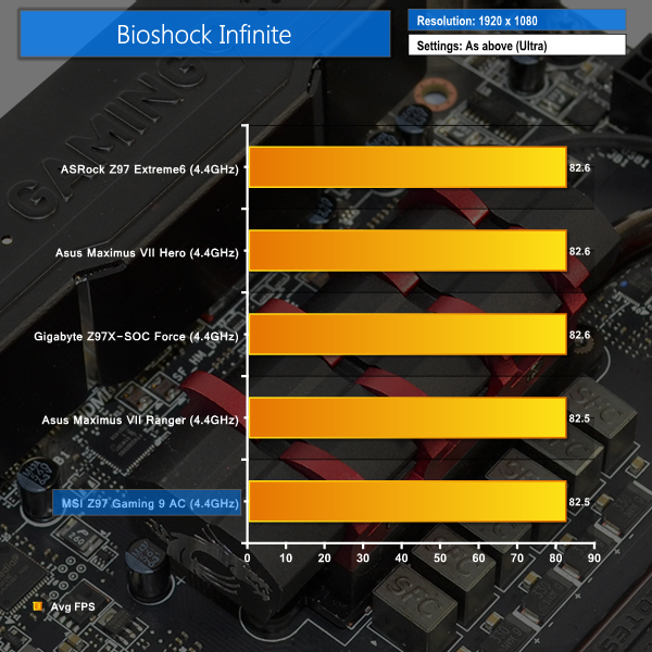 We used the Bioshock Infinite demanding ‘Ultra’ setting and a 1920 x 1080 resolution to push today’s gaming hardware. Our data was recorded using a section of the game, not the built-in benchmark.