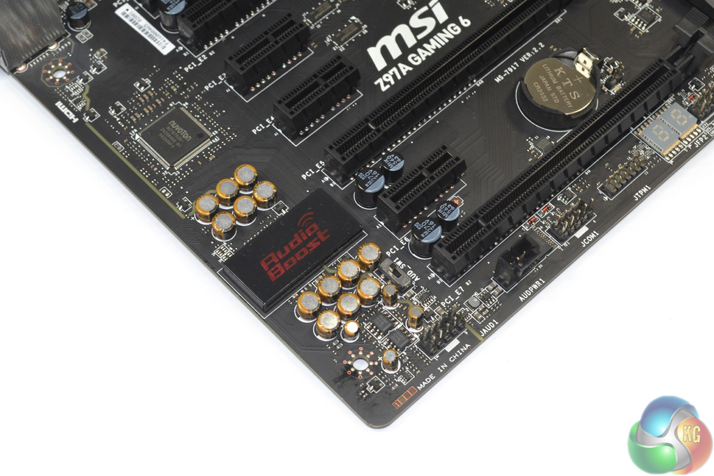 At the heart of MSI’s Audio Boost 2 system is the Realtek ALC 1150 codec. Accompanying the widely-used codec is a pair of Texas Instruments OPA1652 op-amps and Nichicon capacitors.