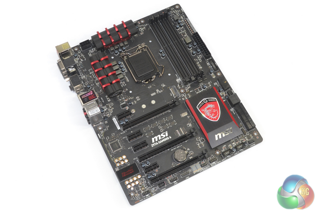 MSI colours the Z97A Gaming 6 in the company’s typical red and black colour scheme that is associated with its Gaming series parts.