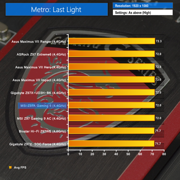 We used a 1920 x 1080 resolution and the Metro: Last Light built-in benchmark set to ‘High’ quality to offer an intense challenge for the gaming hardware while also making playable frame rates a possibility.