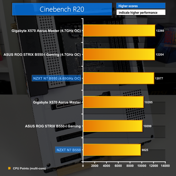 Overclocking performance is – understandably – lacking on the N7 B550 due to the competitors’ abilities to run the 5950X 50MHz higher. The margin is relatively small, though.