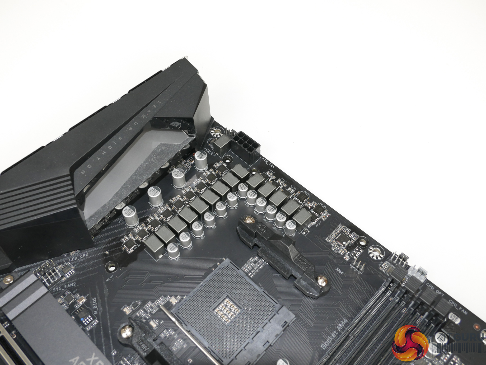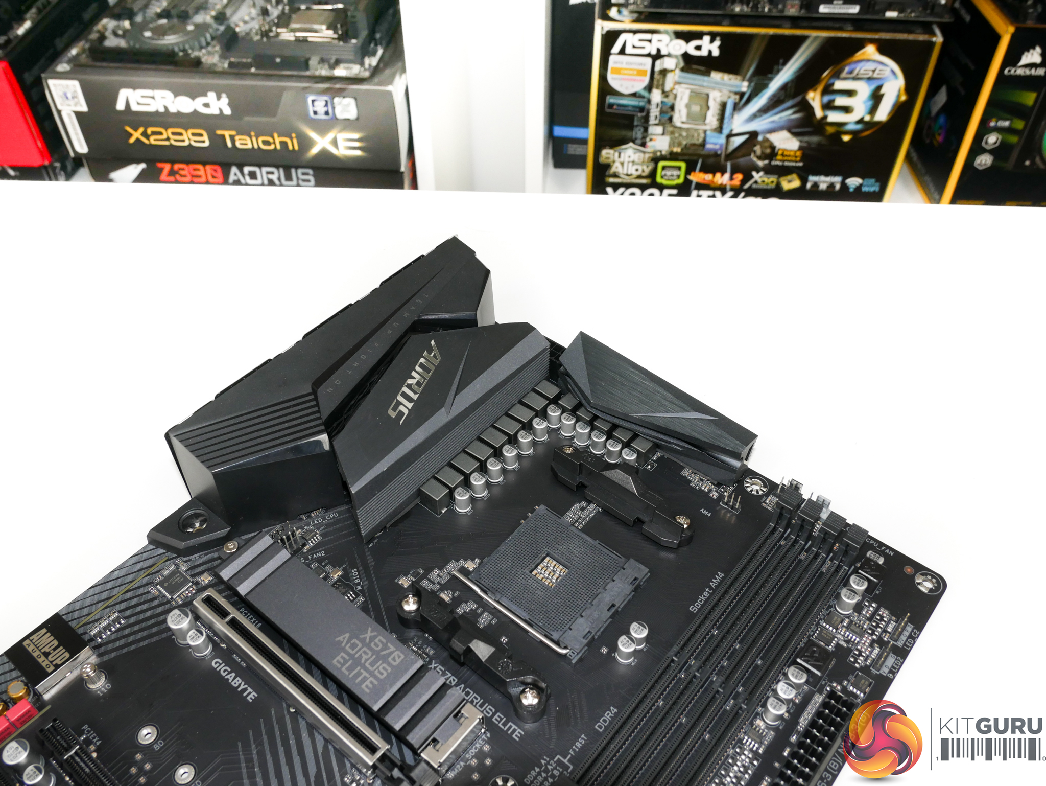 Assessing the CPU VCore alone, Gigabyte’s 12-phase doubled solution is practically identical to that used on the £300 ASRock X570 Taichi. That’s a clear positive for Gigabyte’s £90 cheaper board.
