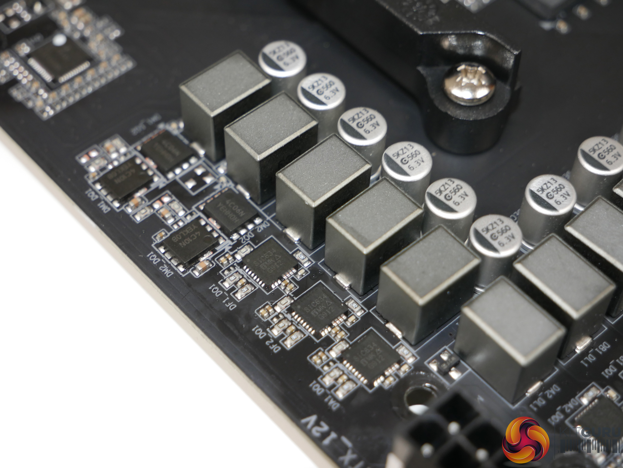 Gigabyte is using the same Intersil ISL69147 PWM controller as ASRock. Again, this is a dual output digital PWM controller that supports up to seven total control phases in an X+Y configuration. With Gigabyte, however, this seven-phase capability is utilised with the assistance of seven ISL6617A phase doublers, all of which are mounted on the rear of the PCB in an un-cooled position.