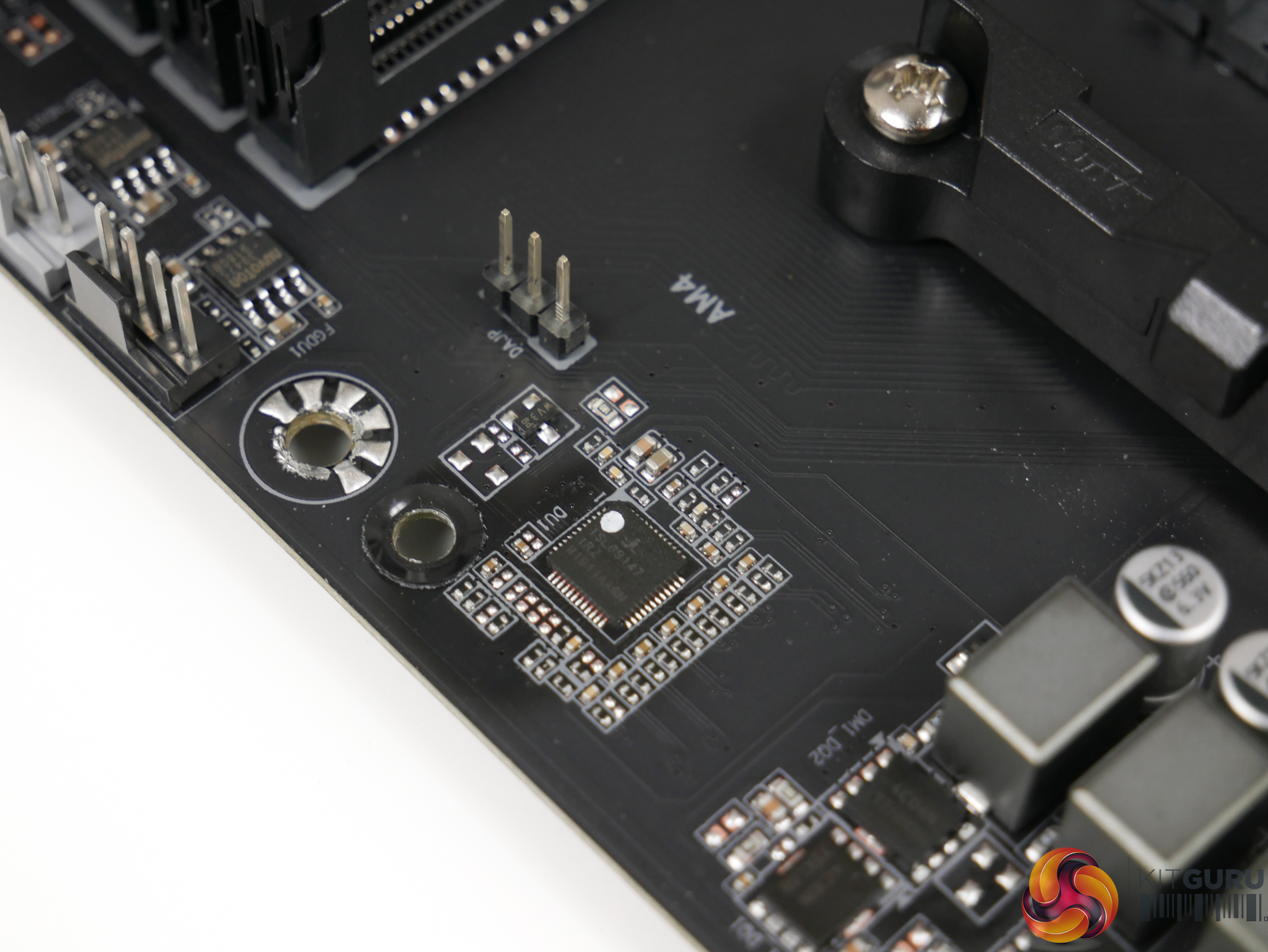 One area where Gigabyte looks to have gone for a basic component representative of this board’s price tag is with the capacitor choice. The 5,000 hour rated capacitors are likely to be fine for almost all situation when the extended lifespan at lower running temperatures is accounted for. However, both ASUS and ASRock look to be using higher-rated alternatives that may be slightly be for longevity… if you plan to keep this board pushed hard forever … which you shouldn’t.