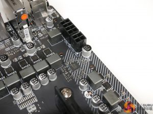 While MSI’s heatsink design isn’t as efficient as it could be, there is a massive slab of metal with a relatively high amount of surface area via a brute force approach. This large heatsink will help to dampen any sudden changes in MOSFET temperatures when short, heavy loads are applied. But for sustained heavy loading, there still needs to be sufficient surface area for the heat to be dumped away from the metal block.