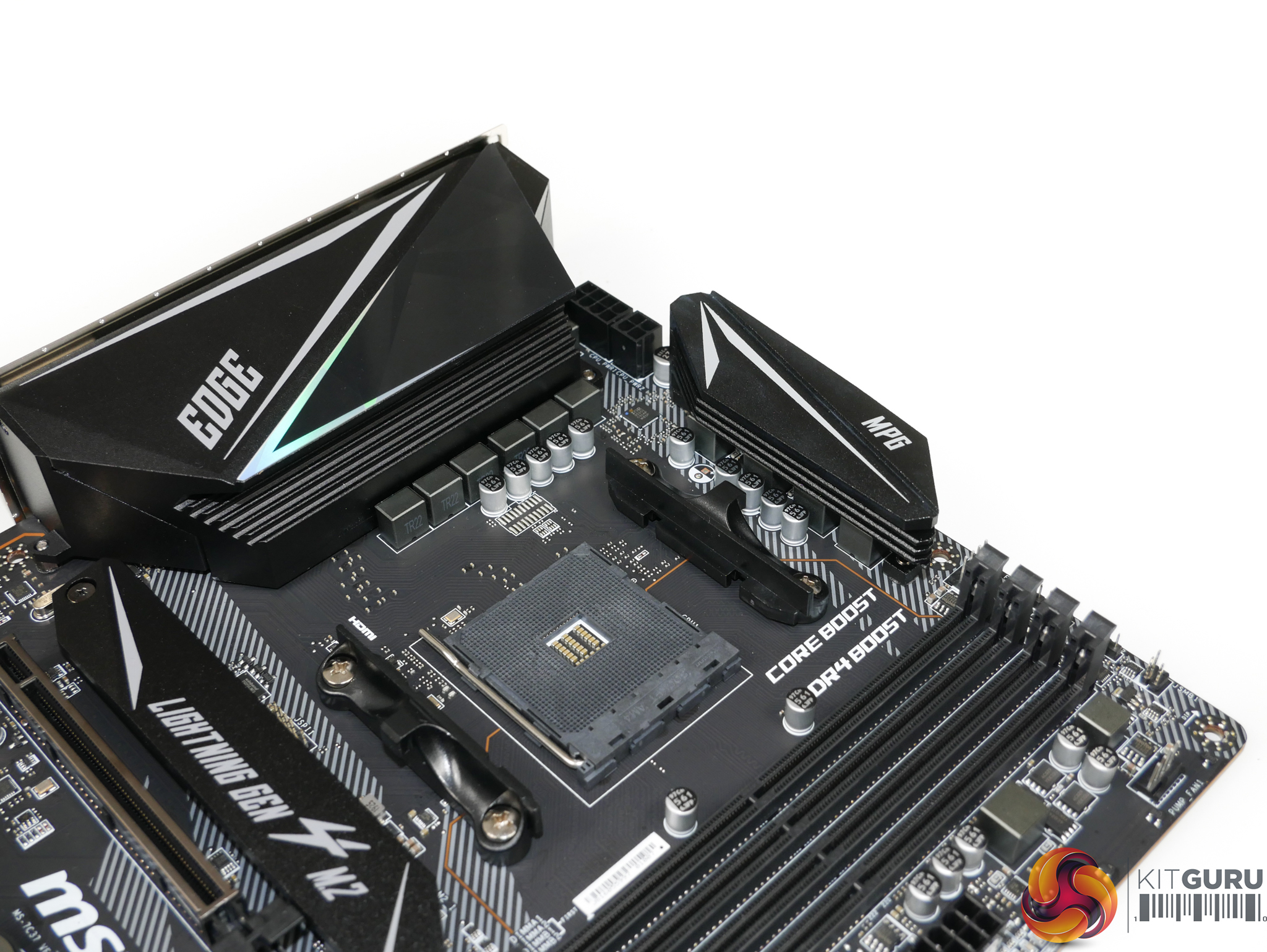 MSI’s £210 competitor comes in the form of the MPG X570 Gaming Edge Wi-Fi. Just like ASUS’ offering, this name is annoyingly long! MSI deploys the typical motherboard colour scheme of dark greys and blacks which looks pretty good in my opinion. A massive RGB lighting edge is one of the key features for MSI.