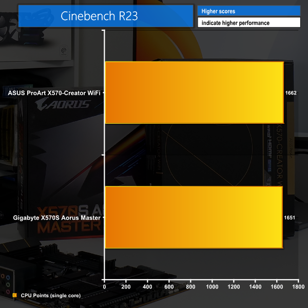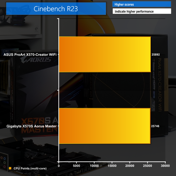 Stock performance is neck and neck between these two passive X570 motherboards, and that is not surprising given the quantity of on-chip resources.