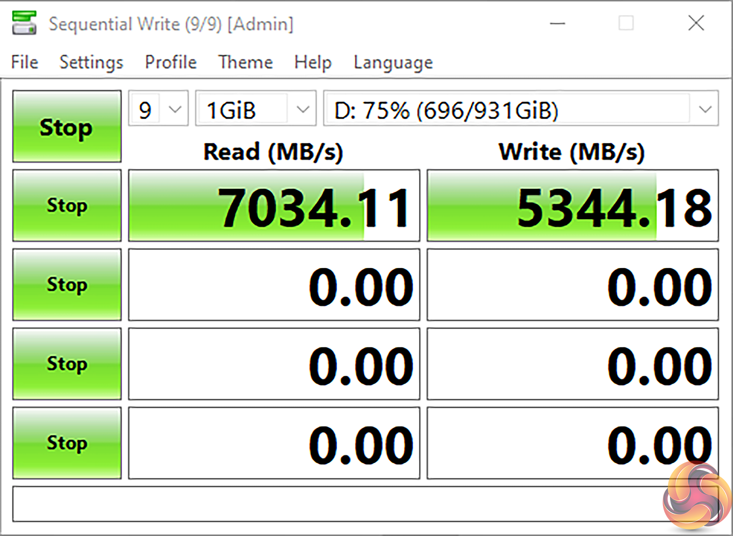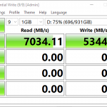 Gigabyte delivered a little over 7GBps peak speed for our WD_Black SN850 NVMe SSD, while the ASUS board’s scores were almost identical. Neither board provided any restrictions.