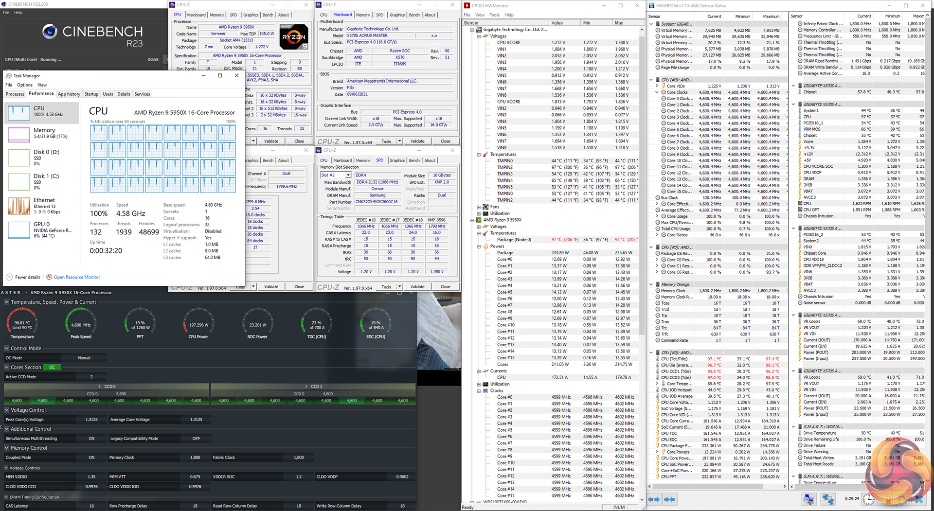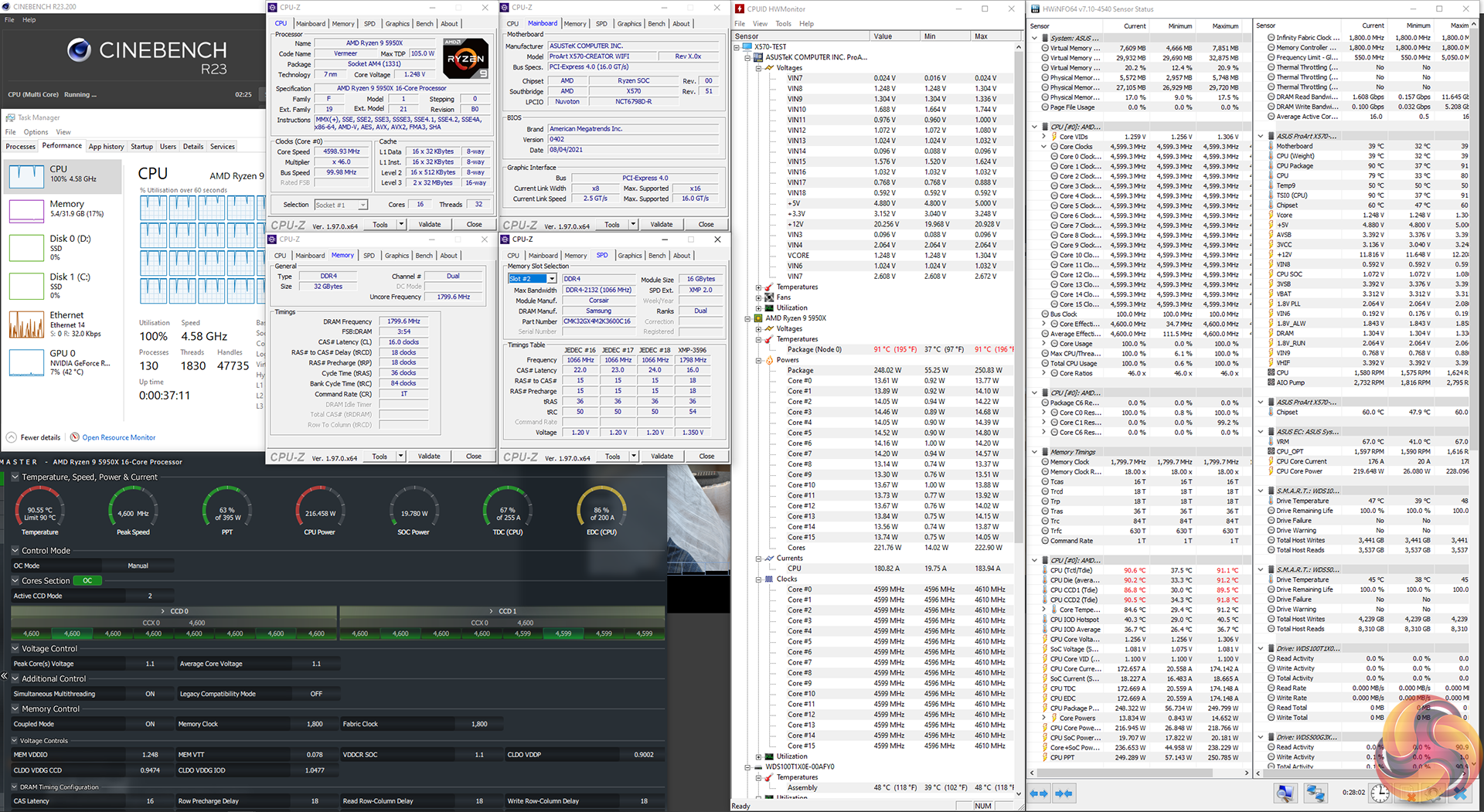Neither board had any trouble pushing CPU package powers in excess of 220W. We could have tuned the OCs better on both boards, but they handled the Ryzen 9 5950X just fine.