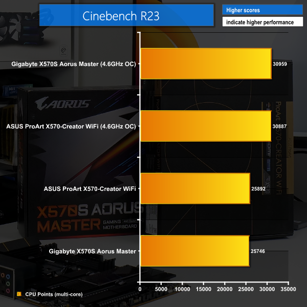 Overclocking performance is close between the two boards at the same CPU overclock. A worthwhile performance boost is clearly achieved.