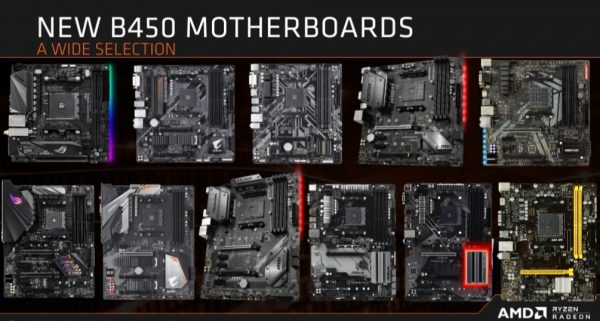 There will be a wide selection of B450 motherboards available at launch, which I'm sure we'll see more of later today. Some companies already began showing off their B450 boards at Computex last month, and a leak two weeks ago revealed options coming from Gigabyte, ASUS, MSI and ASRock.