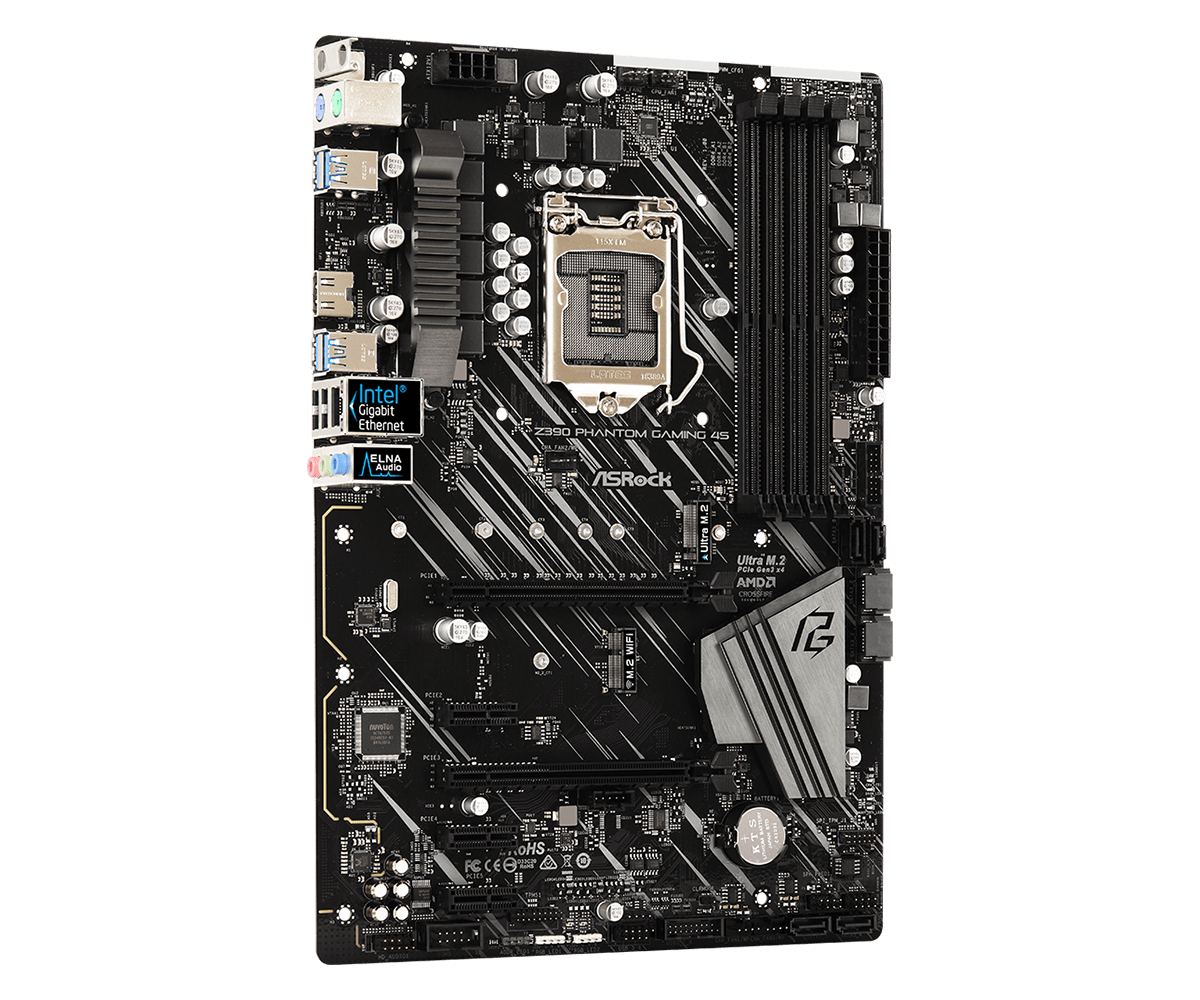 The ASRock Z390 Phantom Gaming 4S supports both Intel 9th Gen and 8th Gen processors, along with DDR4 RAM speeds of 4300MHz via overclocking. It comes with two PCIe x16 slots with support for AMD CrossFire multi-GPU setups. You also get room for an M.2 SSD, built-in audio with support for 7.1 surround sound, four rear USB ports, connectors for an additional four front panel USB ports and finally, ASRock Polychrome RGB.