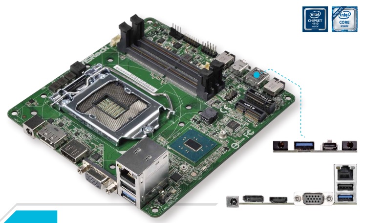 The H110M-STX is larger than a typical NUC, but smaller than a Mini-ITX offering. While it doesn't offer discrete GPU support like a Mini-ITX motherboard would, it does offer a full LGA 1151 socket, allowing you to upgrade your CPU from a Celeron or Pentium all the way up to a Core i7, there is also support for up to 32GB of DDR4 RAM running at 2133MHz.
