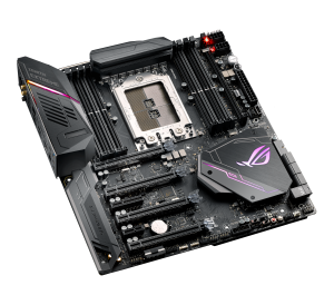 The ASUS ROG Strix X399-E motherboard is one of the cheaper options in the lineup. Unfortunately, we can’t show it to you just yet but ASUS has given us some idea of the features we can expect. For starters, the Strix will feature 2×2 802.11ac wireless, space for up to three double-wide GPUs an three NVMe SSDs, all with full 16x PCIe support. There will be a slot for an M.2 SSD, which will be cooled via its own heatsink to combat throttling. That’s all for now but we should hear more about this board soon.